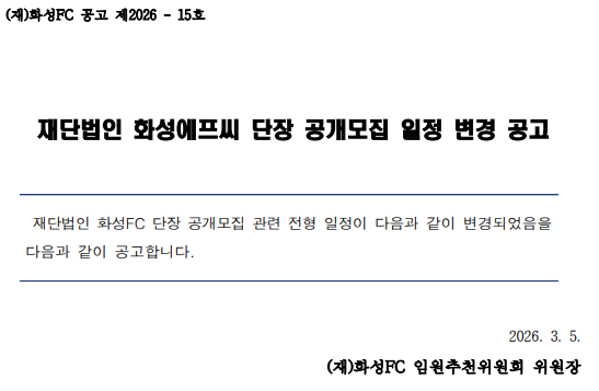 (재)화성FC 단장 공개모집 일정 변경 공고