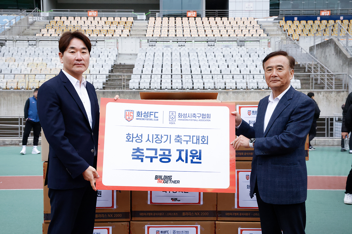 화성FC는 제18회 화성특례시장기 생활체육 축구대회를 맞이하여 화성종합경기타운에서 지역 축구인 응원과 대회 활성화 지원을 위해 축구공을 기부했다.
