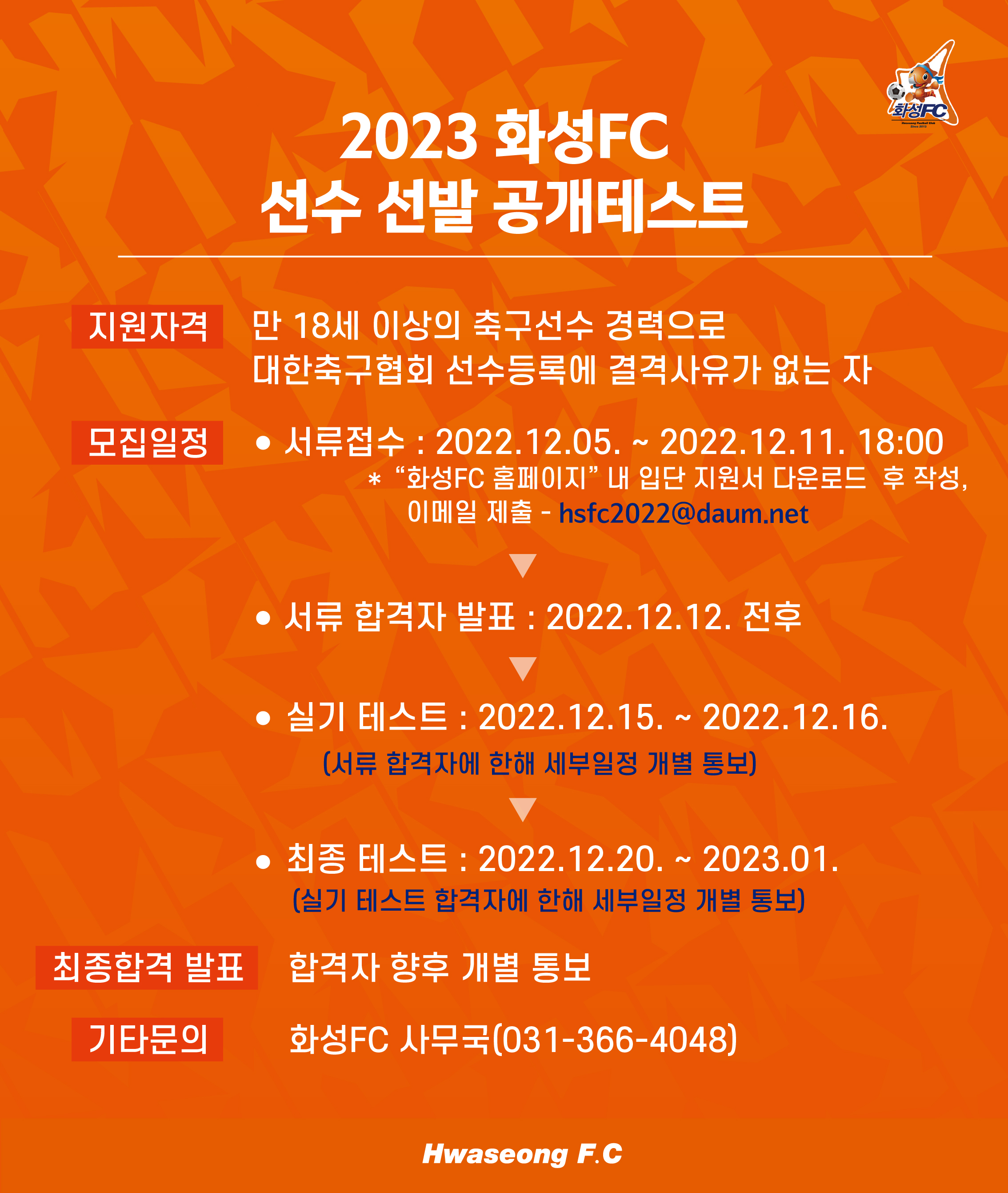 [2023 화성FC 선수 선발 공개테스트 안내]